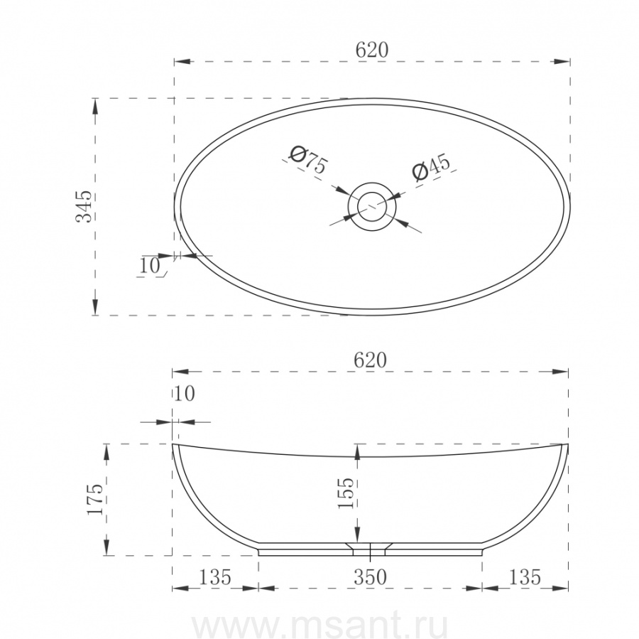 Раковина накладная ABBER Stein AS2610 белая матовая