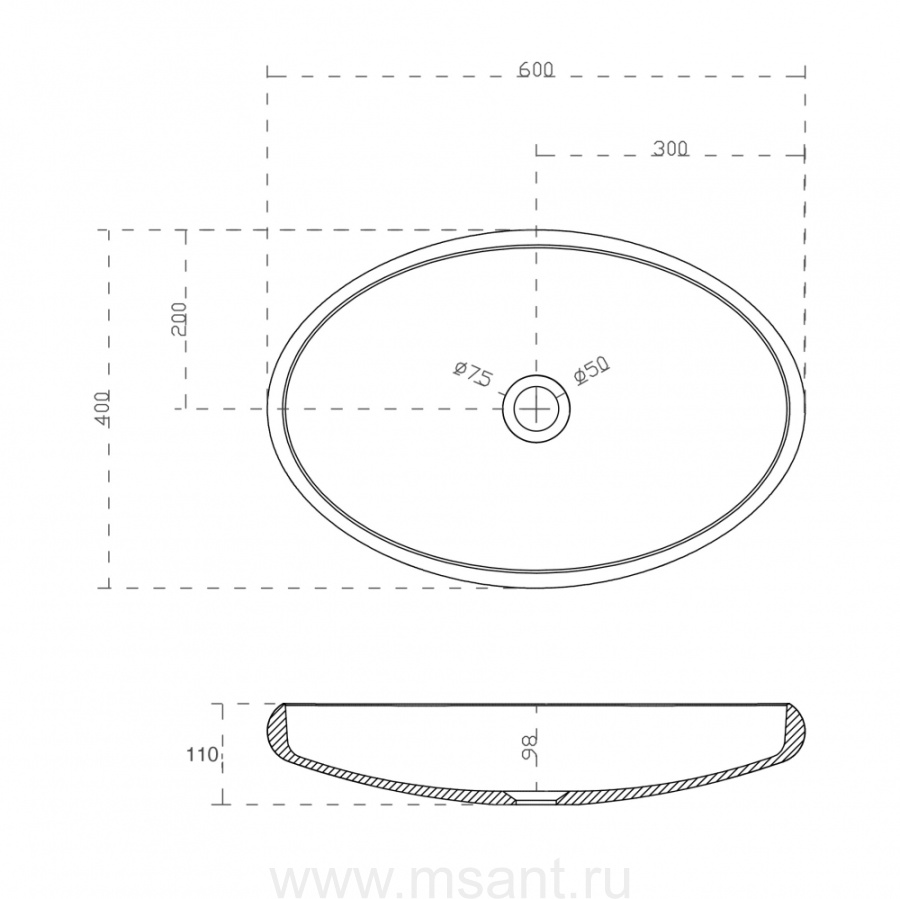 Раковина накладная ABBER Stein AS2614 белая матовая