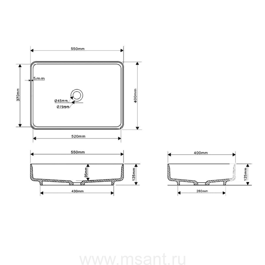Раковина накладная ABBER Stein AS2629 белая матовая