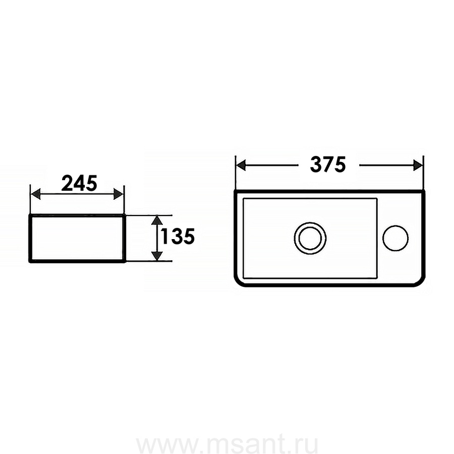 Раковина накладная Azario 375x245x135 правосторонняя, белый глянец