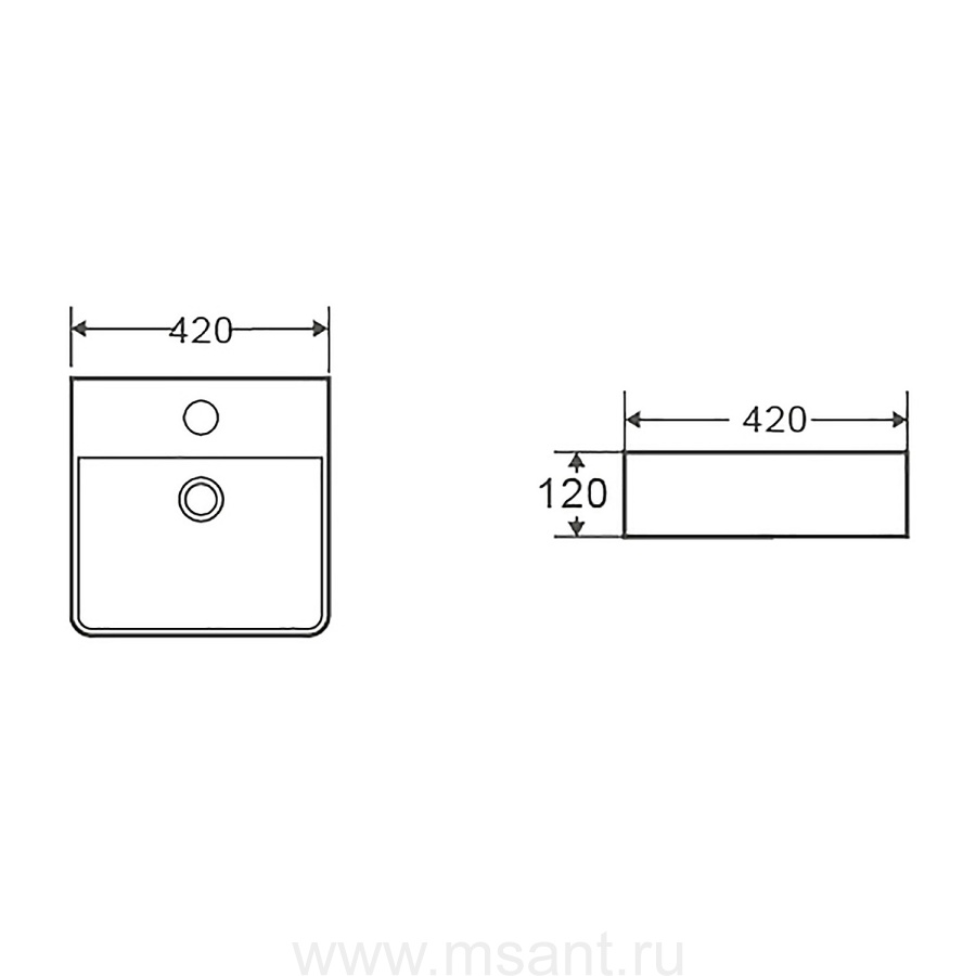 Раковина накладная Azario 420х420х120 квадратная, белый матовый