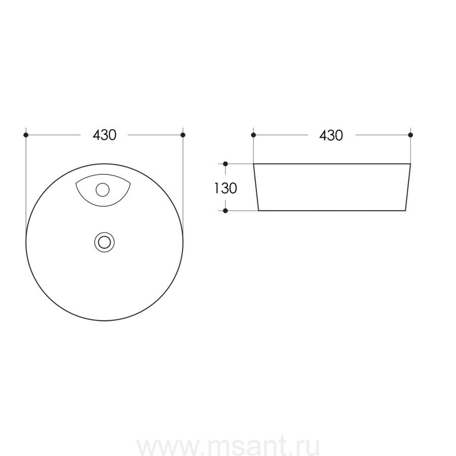Раковина накладная Azario 430х430х130 круглая, белый глянец