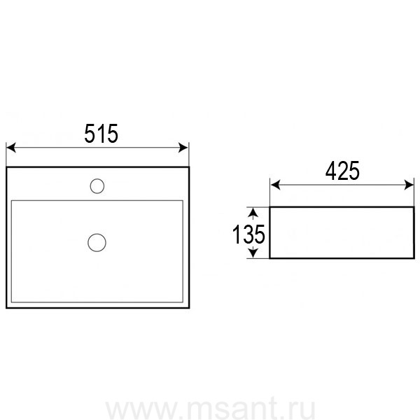 Раковина накладная Azario 515x425x135 прямоугольная, белый