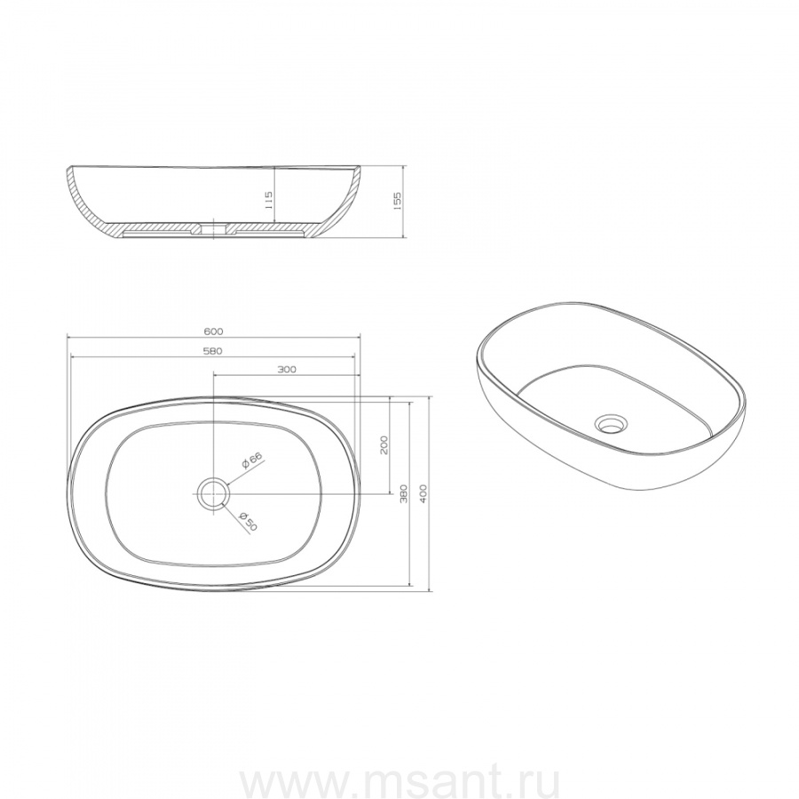 Раковина накладная прозрачная ABBER Kristall AT2805Onyx черная