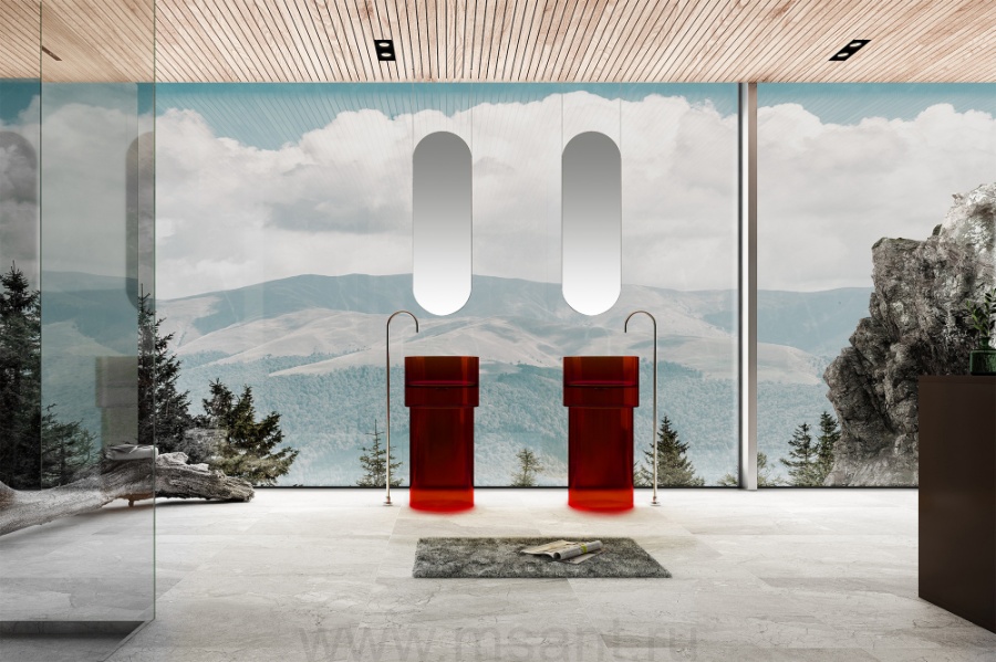 Раковина отдельностоящая прозрачная ABBER Kristall AT2701Rubin-H красная
