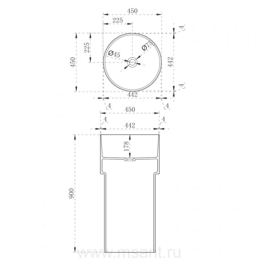 Раковина отдельностоящая прозрачная ABBER Kristall AT2701Rubin красная
