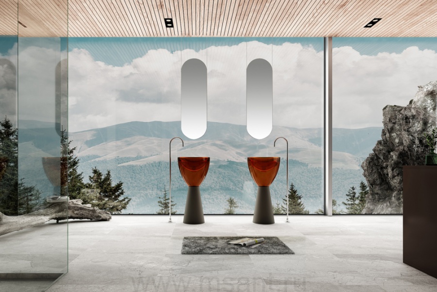 Раковина отдельностоящая прозрачная ABBER Kristall AT2703Black-Opal черный/коричневый