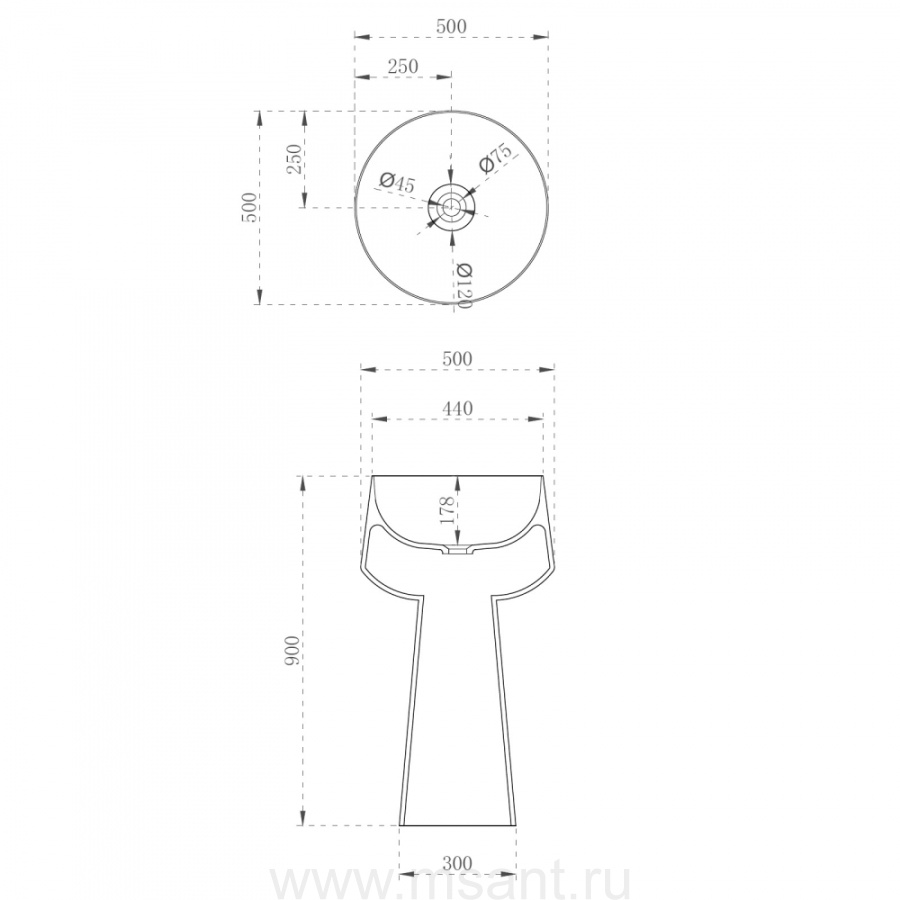 Раковина отдельностоящая прозрачная ABBER Kristall AT2706White-Onyx белый/черный