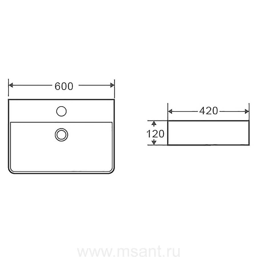 Раковина подвесная Azario 600х420х120 прямоугольная, черный матовый