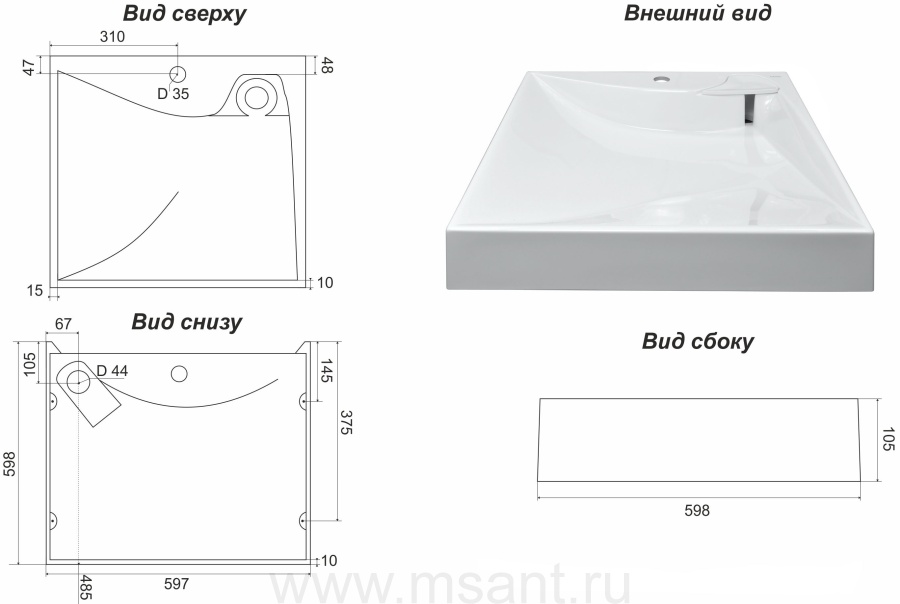 Раковина подвесная Azario Gratsiy 597х598х100 литьевой мрамор, белая (CS00078505)