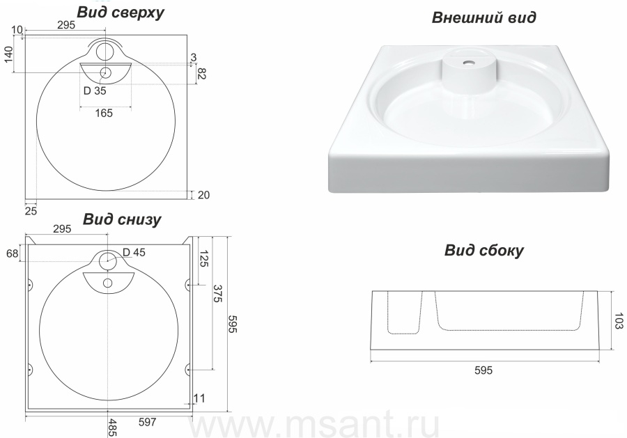 Раковина подвесная Azario Lindi 597х595х90 литьевой мрамор, белый (CS00078504)