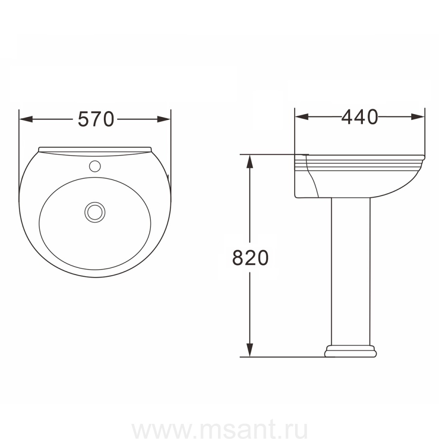 Раковина с пьедесталом AZARIO BENTY 570х440х820 мм