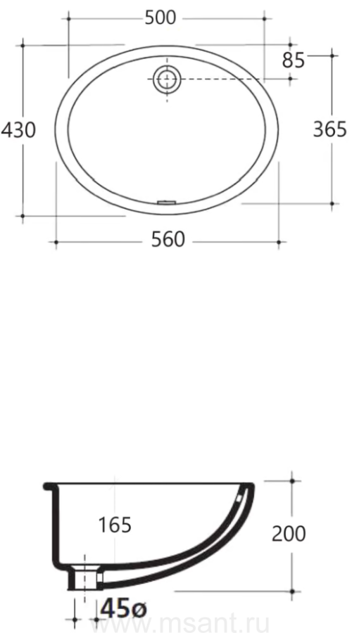 Раковина Galassia Lavabi Arredo Denise встраиваемая снизу 57x43