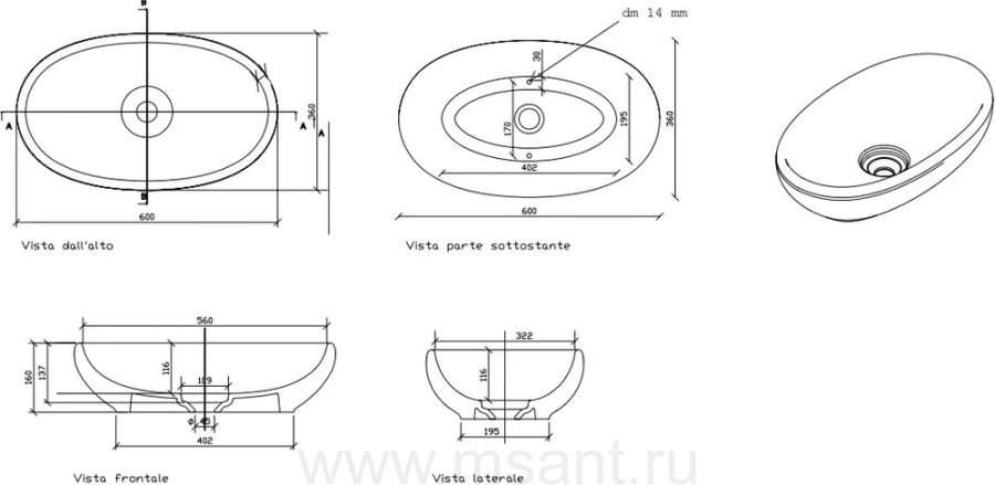 Раковина Galassia Ergo 7106 60 см