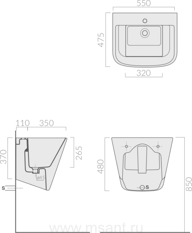 Раковина Galassia Meg11 5482 65x45 хозяйственная