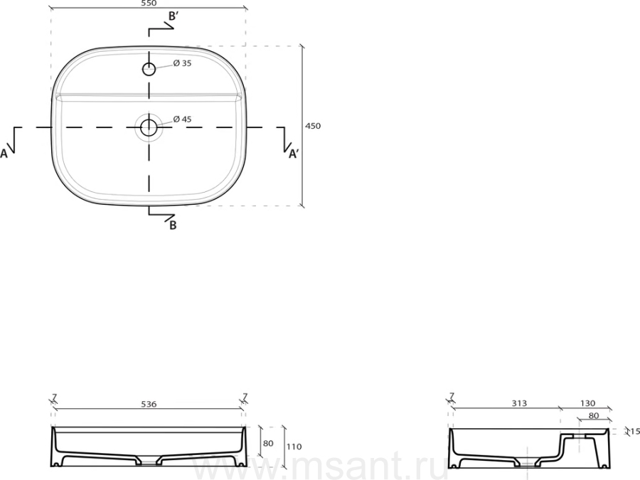 Раковина Galassia SmartB 7401 55x45