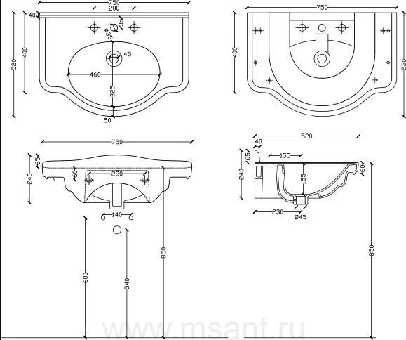 Раковина Galassia Ethos 8433 75 см, 3 отверстия