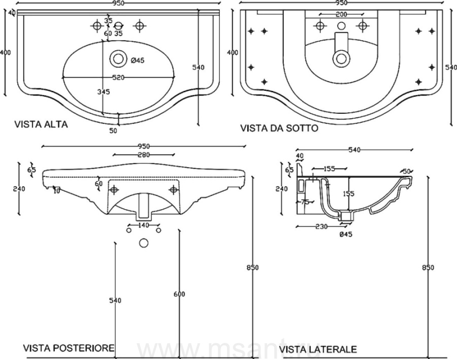 Раковина Galassia Ethos 8434M 95 см
