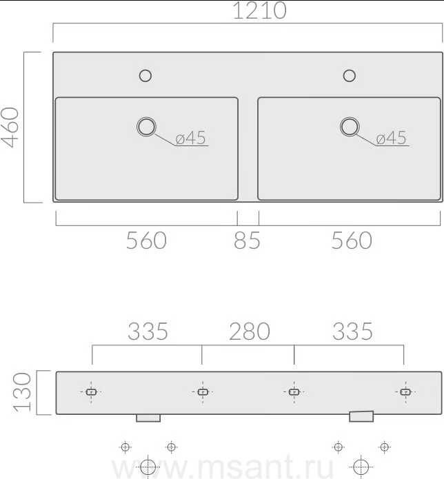 Раковина Galassia Meg11 Pro 8966 двойная 120x46