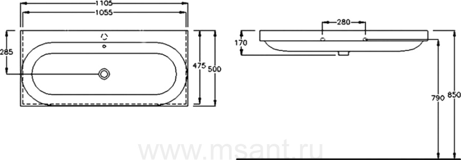 Раковина Hatria Daytime Y0YQ01 110 см, без отверстий