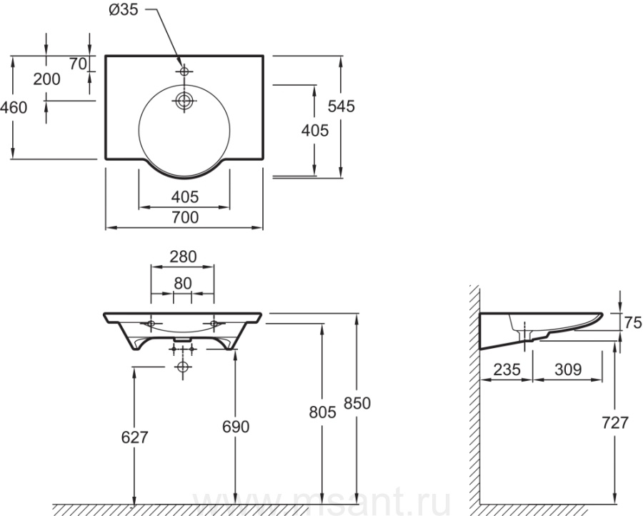 Смеситель Jacob Delafon Purist E14402-4A-CP для раковины