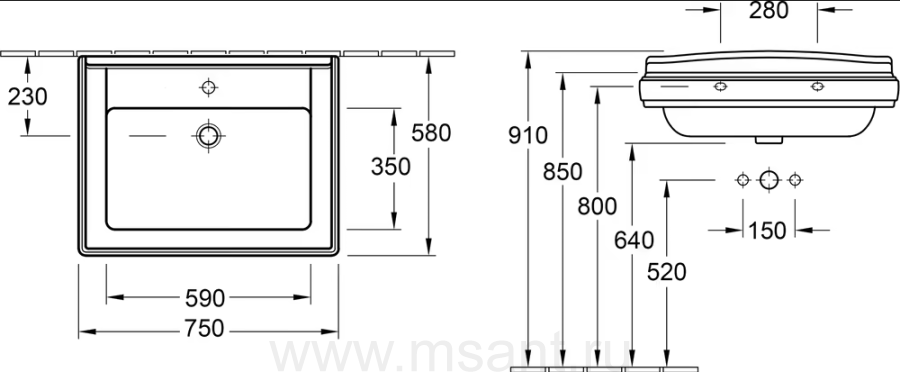 Раковина Villeroy & Boch Hommage 7101 75R1 alpin CeramicPlus