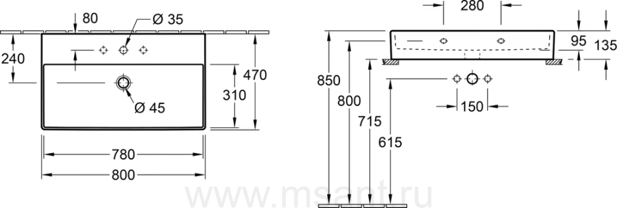 Раковина Villeroy & Boch Memento 4A228L01 alpin, без перелива