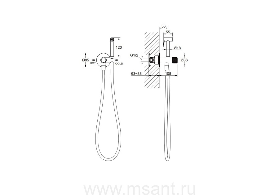 Комплект для гигиенического душа Select встроенный (смеситель + гигиеническая лейка + шланг) AQUATEK, матовый черный AQ1023MB БЕТТА