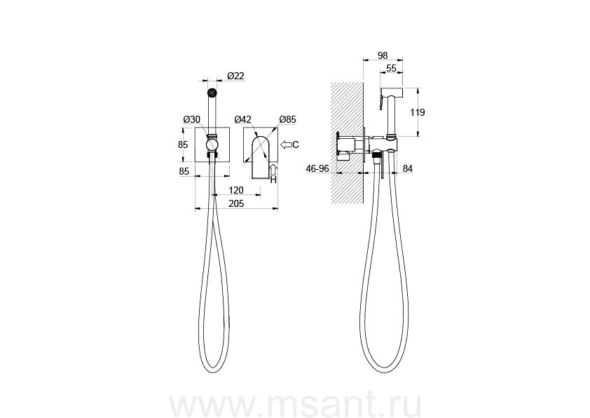 Комплект для гигиенического душа встроенный 2 отв. (смеситель + гигиеническая лейка + шланг) AQUATEK, матовый черный AQ1420MB ЛИРА