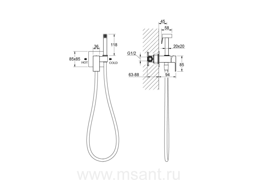 Комплект для гигиенического душа встроенный (смеситель + гигиеническая лейка + шланг) AQUATEK AQ1022CR ЛИБРА