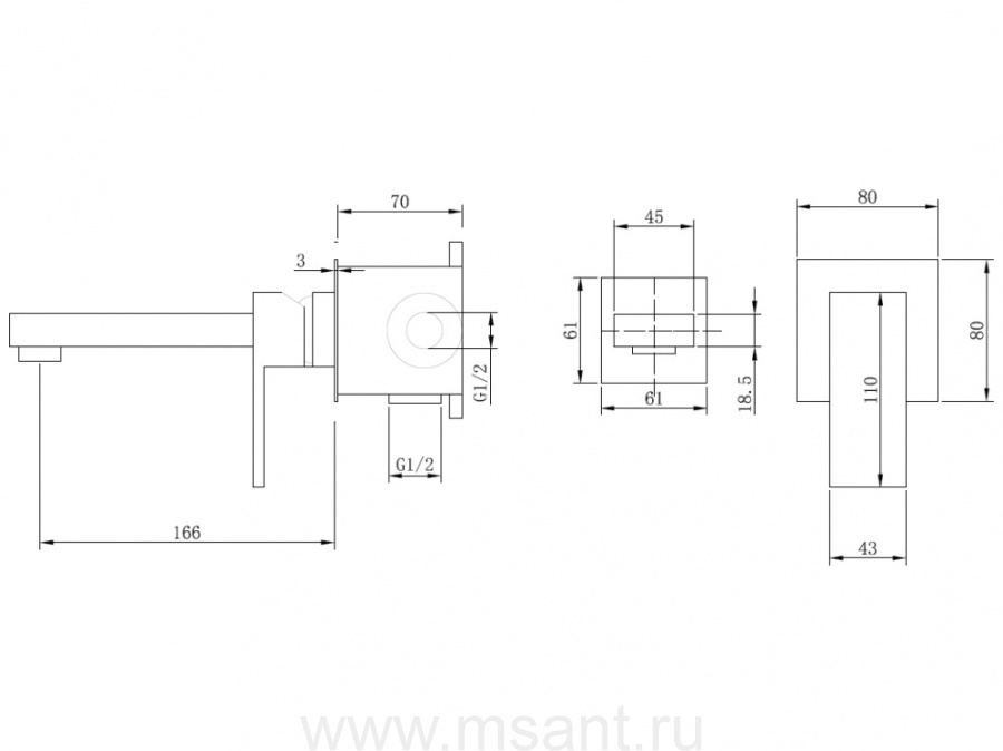Смеситель ABBER Daheim AF8212 для раковины скрытого монтажа, хром
