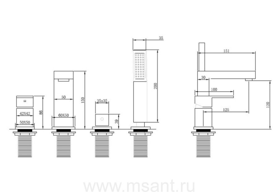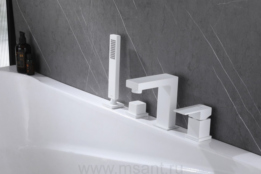 Смеситель ABBER Daheim AF8213W на борт ванны, белый матовый