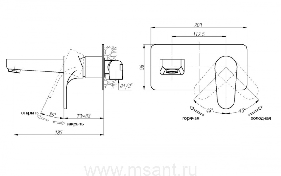 Смеситель ABBER Eleganz AF8312B для раковины скрытого монтажа, черный