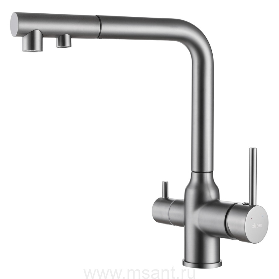 Смеситель ABBER Emotion AF8814NG для кухни с подключением фильтра и выдвижной лейкой, никель