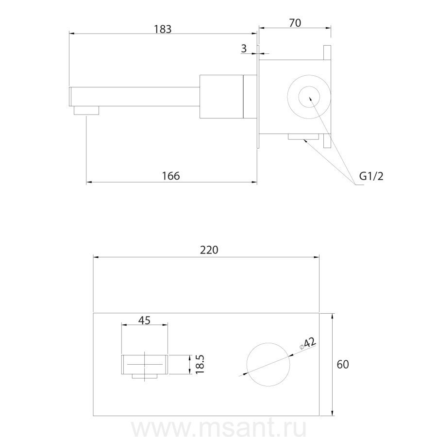 Смеситель ABBER Rund AF8712B для раковины скрытого монтажа, черный матовый