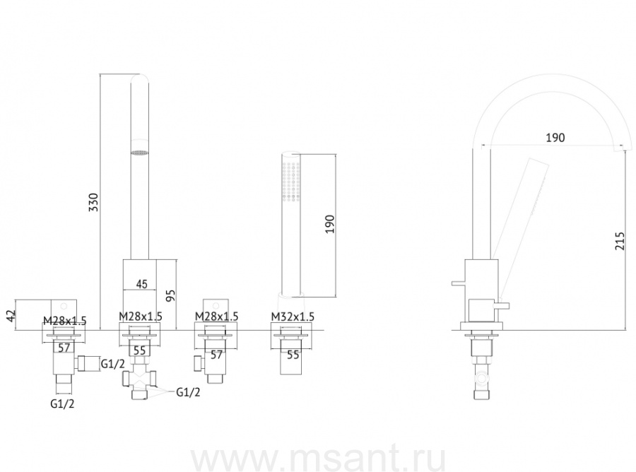 Смеситель ABBER Wasser Kreis AF8113 на борт ванны, хром