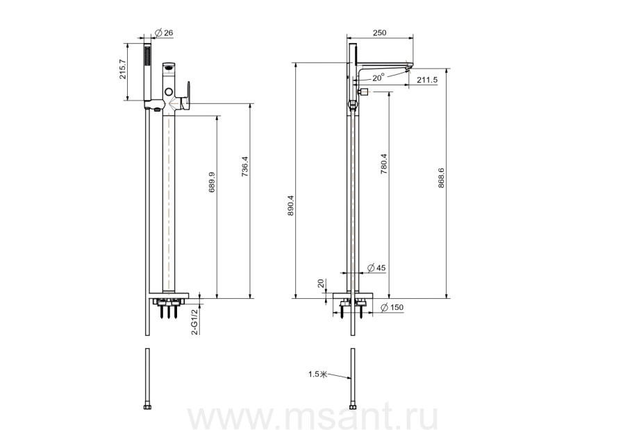 Смеситель Aquatek AQ1845CR НИКА для ванны напольный