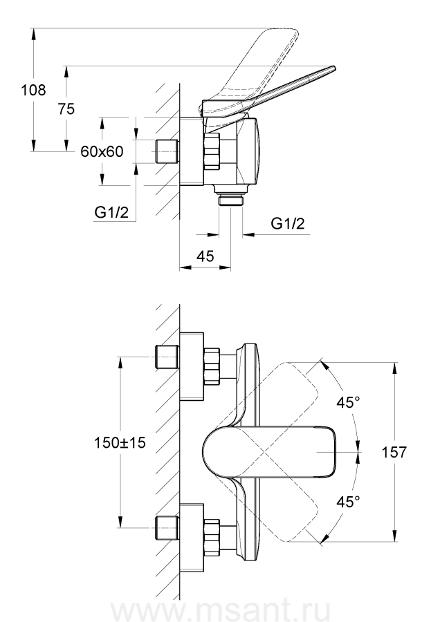 Смеситель для душа Cersanit ODRA 63052 однорычажный
