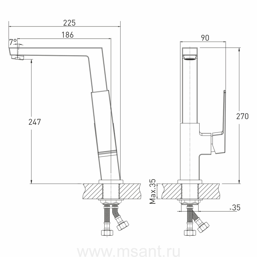 Смеситель для кухни 25k MIXLINE ML20-032 "Quadro" высокий излив боковая ручка