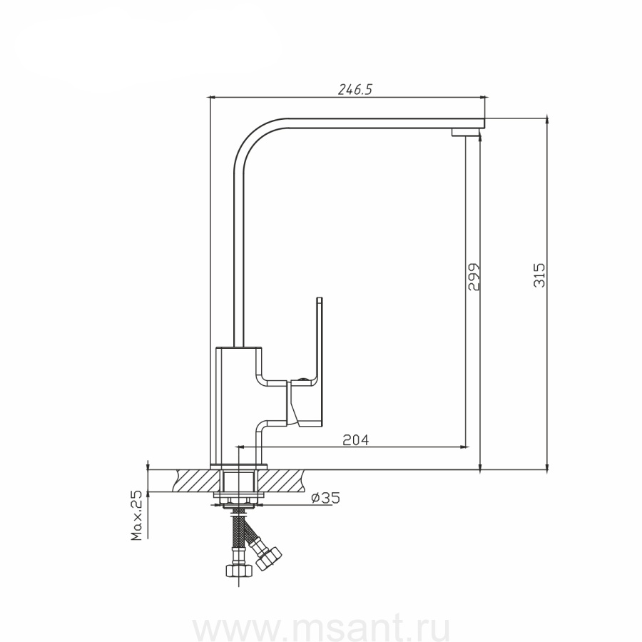 Смеситель для кухни 35k MIXLINE ML34-032 "Solo Black" высокий излив, боковая ручка ЧЕРНЫЙ