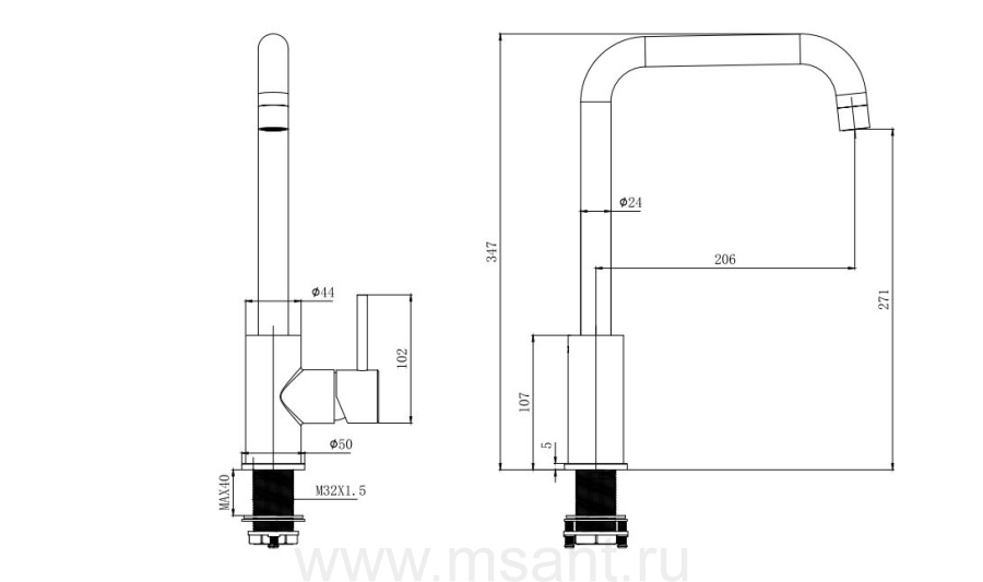 Смеситель для кухни AQUATEK (квадратный излив) AQ1080CR