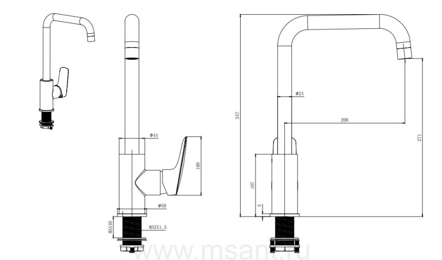 Смеситель для кухни AQUATEK (квадратный излив), матовый черный AQ1081MB ВЕГА