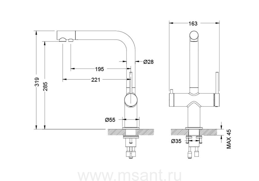Смеситель для кухни с подключением к фильтру питьевой воды AQUATEK AQ1385CR ЕВРОПА