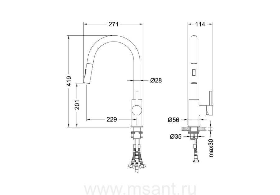 Смеситель для кухни с вытяжным изливом 2 jet AQUATEK, матовый черный AQ1384MB ЕВРОПА