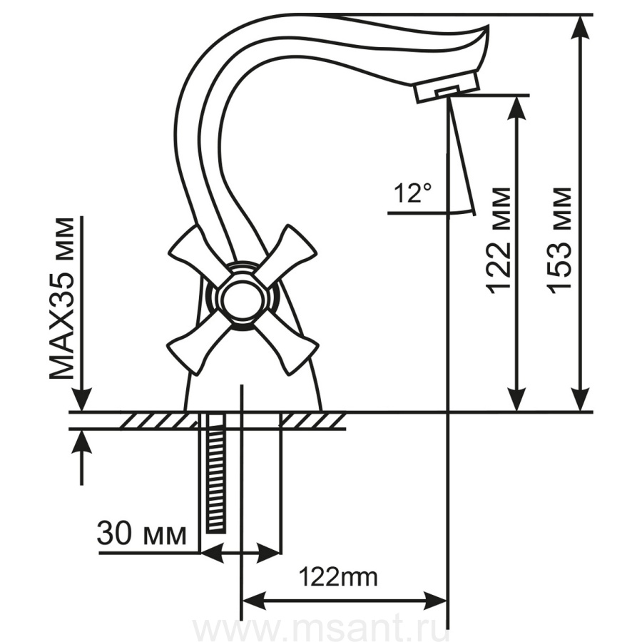 Смеситель для раковины 1/2 кер. MIXLINE ML10-04 п/гайку (без подводки)
