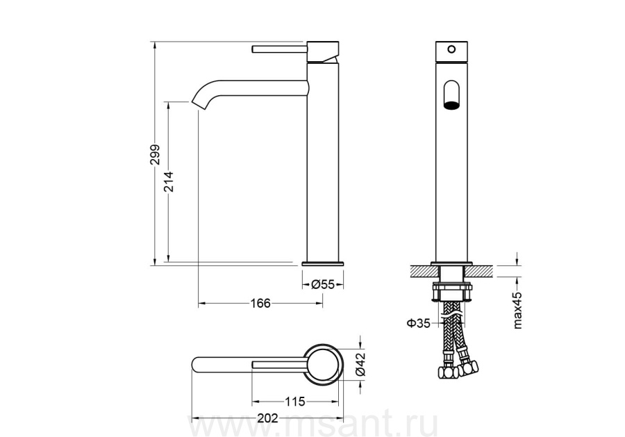 Смеситель для раковины 215, без донного клапана AQUATEK AQ1304CR ЕВРОПА