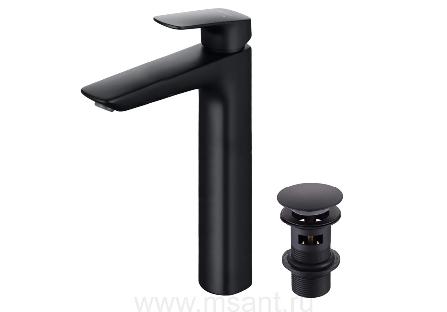 Смеситель для раковины 227 с донным клапаном AQUATEK, матовый черный AQ1005MB ВЕГА