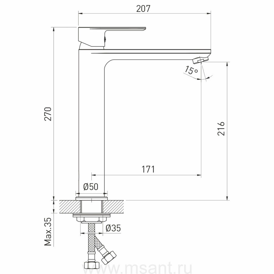 Смеситель для раковины 35k MIXLINE ML26-042 "Life" высокий излив