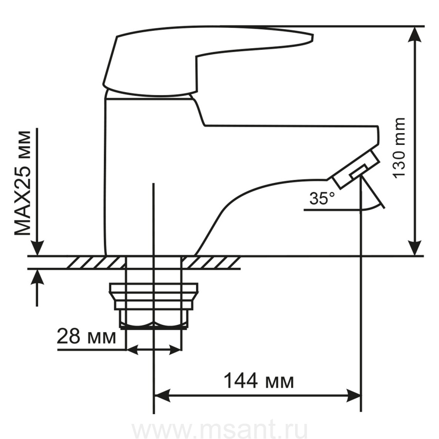 Смеситель для раковины 40k MIXLINE ML08-04 б/отв п/гайку (без подводки)