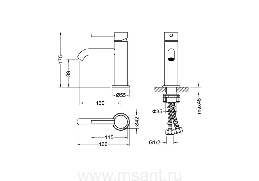 Смеситель для раковины 89, без донного клапана AQUATEK, матовый черный AQ1310MB ЕВРОПА